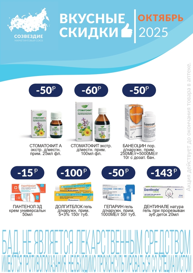 В наших аптечных пунктах периодически проводятся акции по продаже препаратов самого широкого ассортимента.