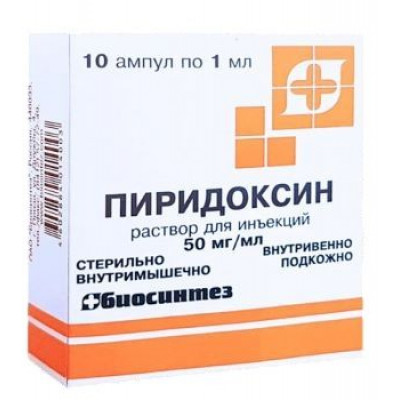 ПИРИДОКСИНА Г/Х 50МГ/МЛ. 1МЛ. №10 Р-Р Д/ИН. АМП. (ВИТАМИН В6) /БИОСИНТЕЗ/