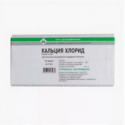 КАЛЬЦИЯ ХЛОРИД 10% 5МЛ. №10 Р-Р Д/В/В АМП. /ДАЛЬХИМФАРМ/