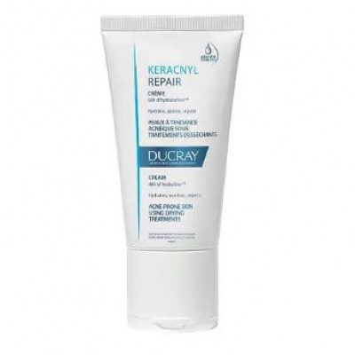 KERACNYL REPAIR - первый на рынке дермокосметики восстанавливающий крем из серии «стерильная косметика» для ухода за пересушенной кожей в результате медикаментозного лечения акне. Безопасная формула стерильного крема увлажняет кожу в течении 48 часов и восстанавливает ее защитный барьер, избавляя от ощущения сухости и дискомфорта. Благодаря ультра-легкой текстуре молочка, крем мгновенно впитывается, не оставляя жирных следов на коже. Основные активные компоненты: • Hydroxydecine® стимулирует естественное увлажнение кожи и благодаря антиоксидантному действию защищает клетки кожи от вредного воздействия свободных радикалов • Витамин F восстанавливает гидролипидный барьер кожи, защищает кожу и предотвращает образование комедонов, снимает раздражение и ощущение стянутости кожи, вызванные средствами, которые обезвоживают кожу • Масло карите интенсивно увлажняет, обеспечивает глубокое питание кожи