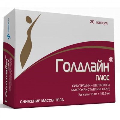 Рекомендуемая начальная доза сибутрамина 10 мг/сутки. Капсулы следует принимать утром, не разжевывая и запивая достаточным количеством жидкости (стакан воды). Препарат можно принимать как натощак, так и сочетать с приемом пищи. Если в течение 4‑х недель от начала лечения не достигнуто снижение массы тела менее 2 кг, то доза сибутрамина увеличивается до 15 мг/сутки. Лечение препаратом Голдлайн® ПЛЮС не должно продолжаться более 3‑х месяцев у пациентов, которые недостаточно хорошо реагируют на терапию, т.е. которым в течение 3‑х месяцев лечения не удается достичь снижения массы тела на 5% от исходного показателя. Лечение не следует продолжать, если при дальнейшей терапии, после достигнутого снижения массы тела, пациент вновь прибавляет в массе тела 3 кг и более. Длительность лечения не должна превышать 1 год, поскольку в отношении более продолжительного периода приема сибутрамина данные об эффективности и безопасности отсутствуют.